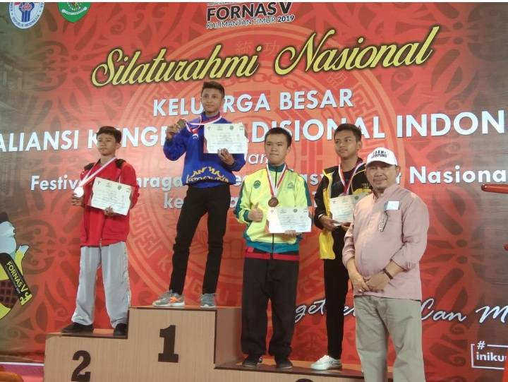 Ketua Formi Lampung Ansory Djausal usai mengalungkan medali emas kepada atlit AKTI Lampung yang mendapatkan medali emas. Sementara untuk urutan nasional, Formi Lampung menempati urutan ke 7 dari 34 provinsi se Indonesia yang berpartisipasi dalam ajang dua tahunan itu."Ini prestasi yg sungguh membanggakan dari kontingen Formi Lampung. Berangkat tanpa target, pulang membawa hasil yang luar biasa, " tegas Ketua Formi Lampung, Ansory Djausal, disela acara penutupan Fornas Samarinda, di hotel Haris, Samarinda, (18/11). Kontingen Formi Lampung berada di puncak klasemen se Sumatera. Urutan kedua ditempati Sumatera Barat dengan 3 emas 4 perak 3 perunggu. Lalu kontingen Sumatera Selatan dengan 3 emas 2 perak. Terakhir Bangka Belitung dengan 2 perak 2 perunggu. Sedangkan provinsi lain Sumatera Utara, Kepulauan Riau, Riau, Jambi, Aceh dan Bengkulu, tidak mendapatkan medali. "Lampung berada di bawah kontingen Jawa Tengah dengan merebut 7 emas, 22 perak dan 7 perunggu," lanjut Ansory Djausal. Urutan pertama ditempati kontingen Formi Kalimantan Timur dengan perolehan medali 65 emas 60 perak dan 90 perunggu."Ke depan pada Fornas di Palembang, kita akan pertahankan prestasi yang sudah kita raih di Fornas Samarinda ini. Kalo bisa kita tingkatkan karena Fornas di Palembang, Formi Lampung bisa mengikut sertakan cabang-cabang olahraga rekreasi lain," papar Ketua Formi itu. Ditambahkan Ketua Kontingen Formi Lampung, Gino Vinolie, banyak pelajaran yang didapat selama mengikuti Fornas Samarinda ini. "Pelajaran yang baik dari penyelenggaraan Fornas Samarinda ini akan kita adopsi pada saat Lampung menjadi tuan rumah Fornas nanti," tambahnya. Adapun cabang-cabang olahraga yang menyumbangkan medali untuk kontingen Formi Lampung, paling banyak disumbang dari AKTI. Disusul IF3 dan KIS. "Cabang olahraga lain yang kita ikut sertakan sudah tampil maksimal. Hanya saja, atlit-atlit dari provinsi lain tampil lebih perkasa," jelas Gino. (rls/adk/Jf).