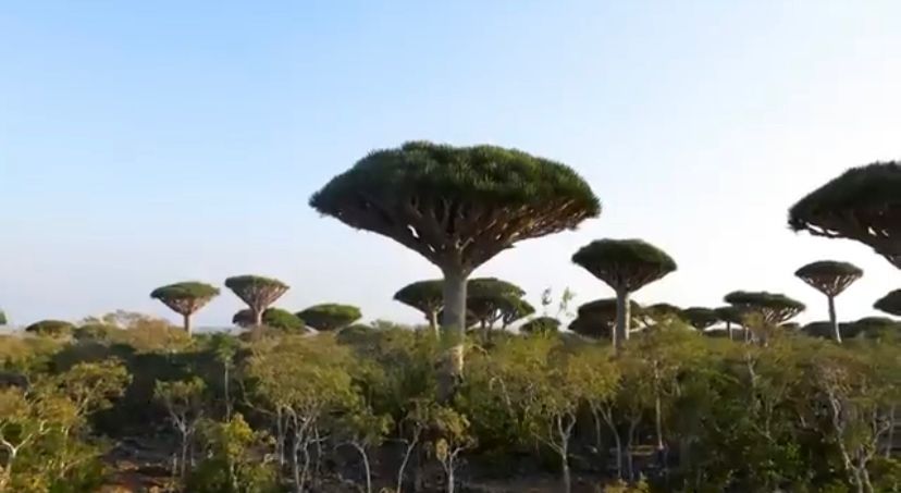 Socotra, pulau terpencil di Samudera Hindia, memiliki keanekaragaman hayati yang luar biasa sekitar 37% spesies tanaman di pulau ini tidak ditemukan di tempat lain di dunia. Yang paling mencolok adalah pohon darah naga (Dracaena cinnabari) yang berbentuk seperti payung raksasa. Dengan karst berbatu dan pantai sunyi, Socotra tampak seperti dunia masa depan yang terlupakan.