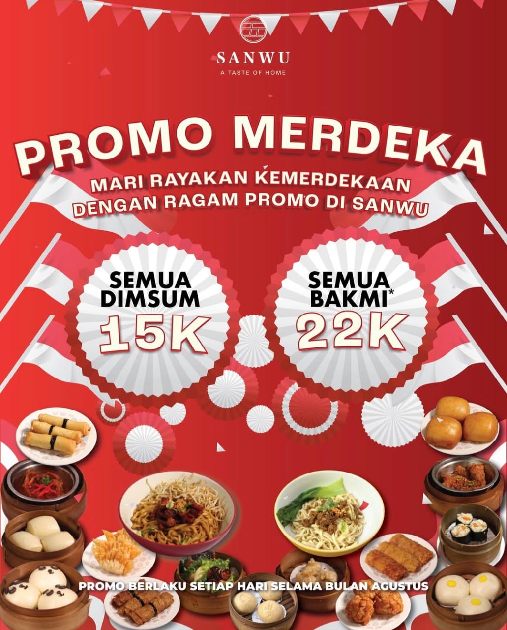 BANDAR LAMPUNG, RADARTVNEWS.COM - Pecinta dimsum dan bakmi Sanwu merapat! Karna di bulan Agustus ini kalian bisa menikmati semua varian dimsum beserta bakmie tanpa membuat dompet kalian jebol. Dalam rangka menyemarakkan Hari Ulang Tahun Republik Indonesia yang ke-79, restoran Sanwu, dengan tagline "A Taste of Home," kembali memanjakan para pelanggan setianya dengan promo spesial yang bertajuk "promo Merdeka."